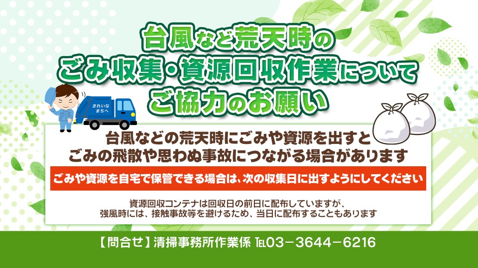 台風など荒天時のごみ収集・資源回収